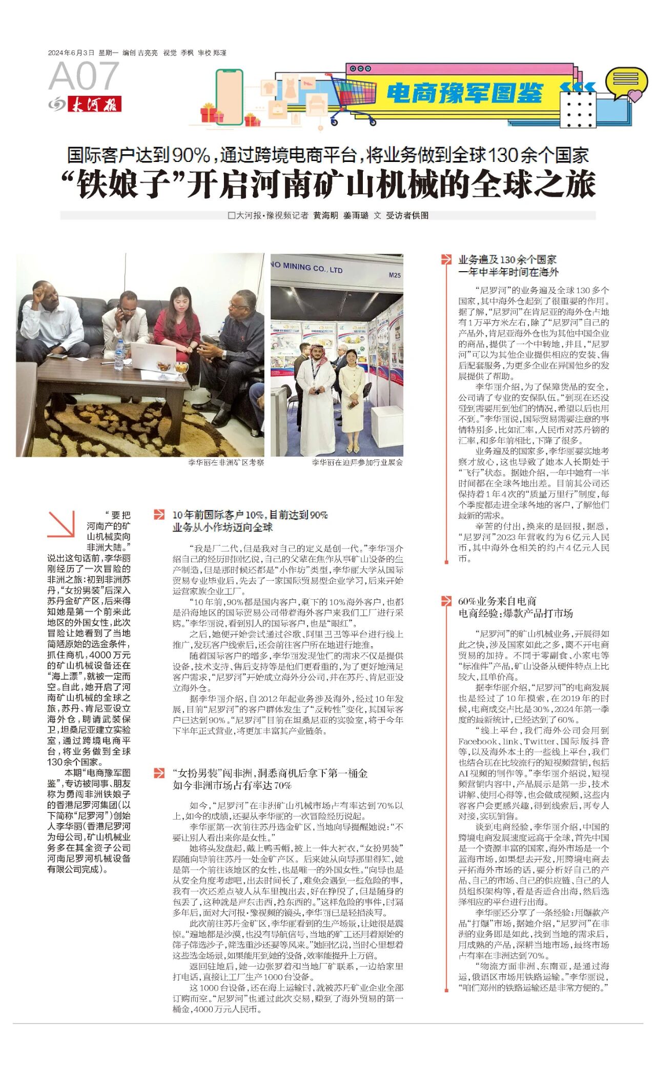 新闻回顾 | 尼罗河机械总经理李华丽接受大河报·豫视频独家采访